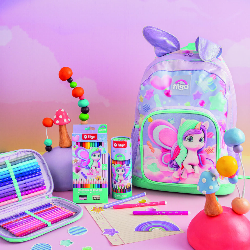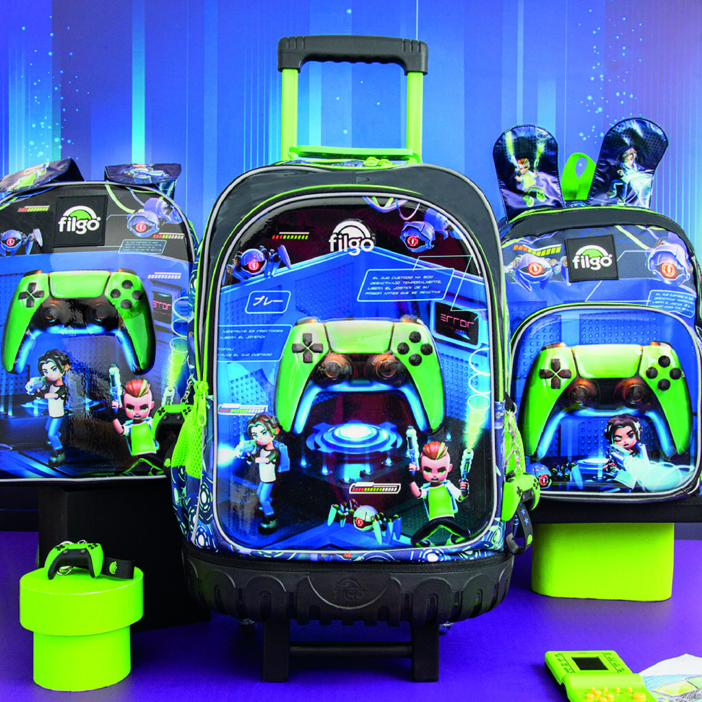 3D: Mochilas con carrito con ruedas Evolution con luz, diseños trendy, base plástica para mayor protección y llavero de regalo. Además, completá la colección con las cartucheras, los lápices y marcadores Fantasy!