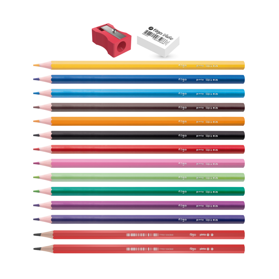 12 lápices de color y 2 lápices de grafito hexagonales